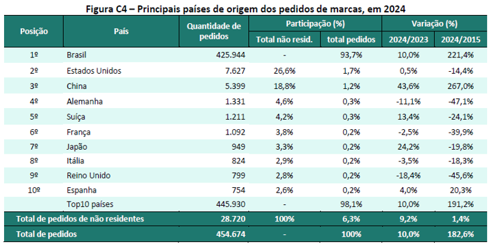 The ranking of applicants illustrates the diversity of trademark ownership in Brazil. In 2024, the leading resident applicants were:
